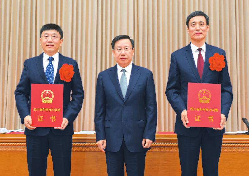 会上,宣读了《四川省人民政府关于2024年度四川省科学技术奖励的决定》。在全场热烈掌声中,王晓晖分别为2024年度省科学技术杰出贡献奖获得者——中国工程院院士、航空工业成都飞机设计研究所型号总师王海峰和中国工程院院士、中国科学院光电技术研究所所长罗先刚颁奖。随后,王晓晖、施小琳、于立军等省领导为2024年度省杰出青年科学技术创新奖、自然科学奖、技术发明奖、科学技术进步奖获奖代表颁奖。罗先刚和中国科学院院士、西南交通大学首席教授翟婉明代表奖励获得者作交流发言。
